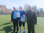 Далее на базе нашей школы прошли соревнования по футболу, где приняли участие 3 команды: наша школа заняла 2 место, а Евжик Арсений из нашего класса получил диплом и удочку в подарок как лучший игрок